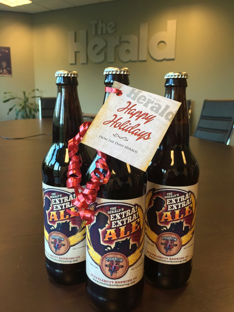 A. Corporate Holiday Gift: Used for Corporate Holiday Gift and to enhance the entrant’s product/service offering relationship with their clients. In addition to the quality beer inside, this special edition beer bottle complete with custom designed The Herald’s Extra Extra Ale beer label and thank you card served as a fun way to remind recipients of our commitment to quality community journalism throughout Snohomish County.